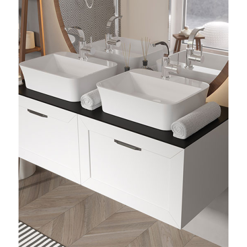 DEXA 80 fürdőszobabútor A BESCO DEXA 80 egy moduláris, függesztett mosdószekrény, amely 80x50x40 cm méretben kizárólag egyedi megrendelésre készül. Nedvességálló MDF előlapok és csendes záródású fiókok biztosítják a hosszú élettartamot és napi kényelmet.