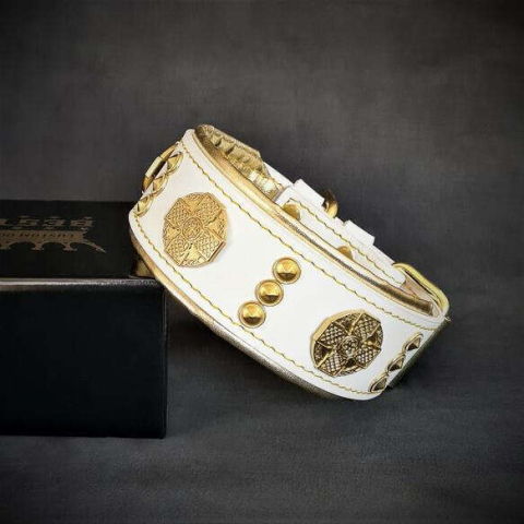 Bestia Bestia Maximus Nyakörv, Természetes Bőr, M, Fehér/Sárga