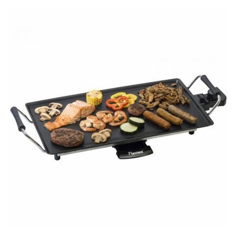 Sütőlap, tapadásmentes felület, feketeTermékinformáció:Magas minőségű, 47.5×25.5 cm sütőlemezTapadásmentes bevonatAlkalmas hús, hal, zöldségek sütéséreLevehető és állítható hőmérséklet szabályozó jelzőlámpaOlaj- és zsírmentes sütésAlkalmas beltéri és kültéri használatraHőálló fogantyúkKönnyen tisztítható2000 Watt teljesítmény2 kgSzélesség: 26.5 cmHosszúság: 62.3 cmMagasság: 11 cmÁttekintés:A BESTRON ABP602 Grill sütőlap magas minőségű sütőlemezével teszi könnyebbé a családi vacsora elkészítését, vagy a barátok vendégül látását. Alkalmas húsok, halak, zöldségek grillezéséhez; illetve beltéri és kültéri használatra is egyaránt. Tapadásmentes felülete az olaj- és zsírmentes grillezést is lehetővé teszi; tálcája pedig begyűjti a felesleges zsírt és sütési maradványokat, így tisztántartása rendkívül könnyű. Csúszásmentes lábainak köszönhetően pedig biztosan áll az asztalon, konyhapulton.