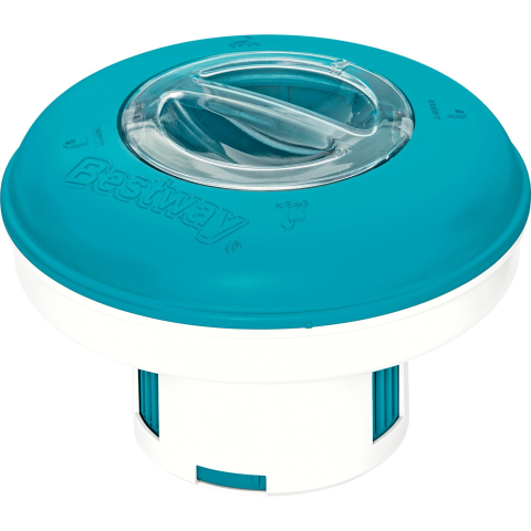 Praktikus adagoló úszó nagy és kis tablettákhoz. Az úszó vegyszeradagolót feloldódó bróm- vagy klórtablettákkal való használatra tervezték.