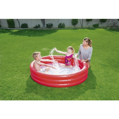 Piros, vagy kék színben. 3 gyűrűs kialakítás. Javítótapasszal. Lepd meg gyermeked ezzel a 3 gyűrűs gyerek medencével, hogy ő is le tudja magát hűteni a kertben a nagy melegben! Ez a gyerek medence kiváló otthoni használatra. A termék egyszerűen felfújható