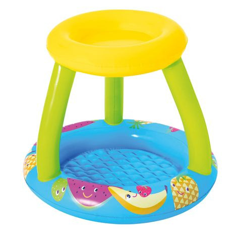 1 kép Bestway Fruit Felfújható gyermekmedence, kerek, tetővel, kék, 94x89x79 cm