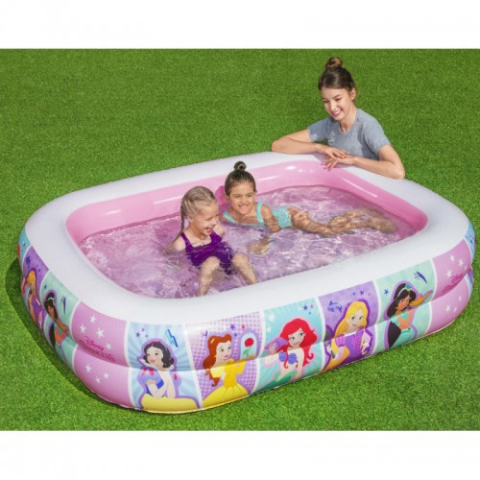 Gyerekeknek készült hercegnős mintájú medence. A medence könnyű, gyorsan felfújható és leereszthető. Két felfújható gyűrűvel rendelkezik, és tökéletes a nyári pihenéshez, lehetővé teszi gyermeke mozgását és játékát a vízben. A medence 3 éves kortól a