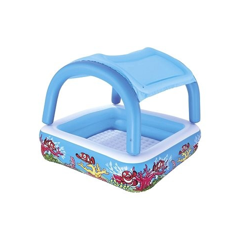 Gyerekmedence - 2 éves kortól ajánlott, 265 l űrtartalom, négyszögletű forma, felfújható, tető a termék része, kék, fehér, zöld, sárga és piros kivitel, tenger motívum, anyaga PVC, méretei 114 × 140 × 140 cm (ma × szé × h), üres medence tömege 3,4 kg Talán senki sem tudja elképzelni a nyarat fürdés nélkül. Most Te is beszerezheted a saját, kerti medencédet.A Bestway felfújható medence tetővel legfontosabb paraméterei