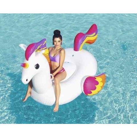 Bestway meglovagolható unikornis, erős vinil anyagból, kapaszkodókkal. Mérete: 224 x 164 cm. Max terhelhetőség: 90 kg. Close Felnőtt méretben kapható felfújható unikornis matrac azoknak, akik minden részletében szeretnék kiszínezni a nyarat. Ha