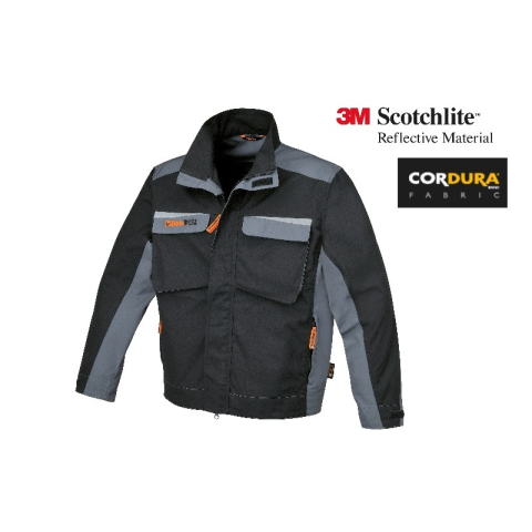 Anyag:T/C Canvas, 65 % poliészter, 35 % pamut, 280 g/m2 Dízájn:• Cordura® Fabric betét könyöknél • 3M-Scotchlite™ fényvisszaverő betétek • Elöl mindkét irányban használható cipzár YKK® rejtett tépőzárral • Mandzsetták PVC-tépőzáras állítási lehetős