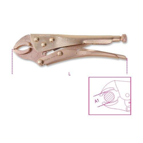 Önzáró vízpumpa fogó homorú pofájú, szikramentes • Réz-berillium ötvözet (CU-BE) • A Beta szikramentes szerszámokat a BAM (Szövetségi Anyagkutató és Vizsgáló Intézet) a 99/92/EC Európai Irányelvnek megfelelően tanusítja. L: 240 mm
