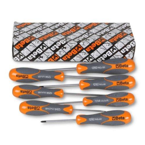 7 részes csavarhúzó szerszám készlet 1292 Csavarhúzó Phillips®-csavarokhoz PH0x3x60 -PH1x4,5x80-PH2x6x100 mm 1294 Csavarhúzó hernyócsavarokhoz 0,5x2,5x60-0,6x3x75-0,8x4x100-1x5x125 mm