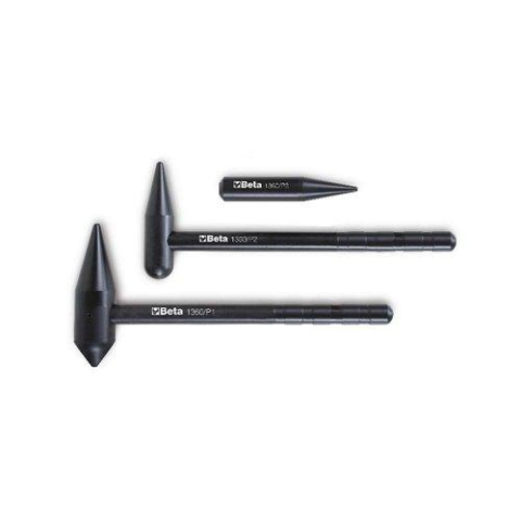 Gömbfejű kalapács, cserélhető hegyek és metszőtűk, műanyagNem okoz sérülést a festett felületen Készlet tartalma: • 1 210 g súlyú kalapács Ø 30 mm fejjel • 1 290 g súlyú kalapács Ø 40 mm fejjel • 1 75 g tüske 5 mm heggyel Készlet tartalma: