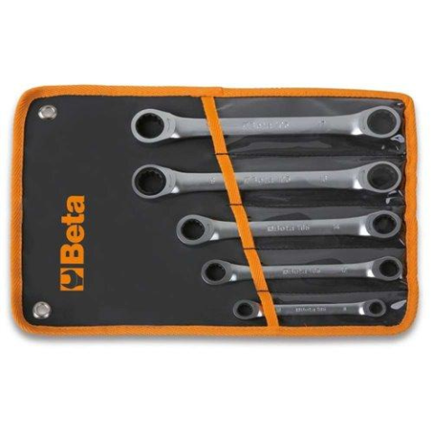 1 kép Beta 195/B5 5 részes egyenes racsnis csillag-villáskulcs szerszám készlet műanyag dobozban