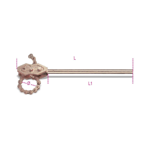 Erősített láncos csőfogó, szikramentes • Réz-berillium ötvözet (CU-BE) • A Beta szikramentes szerszámokat a BAM (Szövetségi Anyagkutató és Vizsgáló Intézet) a 99/92/EC Európai Irányelvnek megfelelően tanusítja. A képen látható tartozékok nem minden e