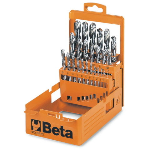 1 kép Beta 412/SP25 rövid csigafúró szerszám készlet műanyag tartóban (004120425)