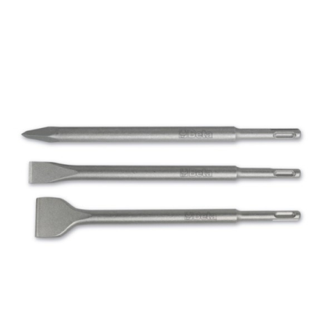 3 darabos SDS PLUS véső készletTartalma: • 1 db hegyes véső • 1 db lapos véső, 20 mm • 1 db széles lapos véső, 40 mm