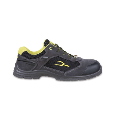 Perforált hasítottbőr cipő, jól szellőző mesh betétekkel 42 Felsőrész:Perforált hasítottbőr jól szellőző mesh betéttel Talp:Normál sűrűségű poliuretán Orrvédő:Polimer anyag, 200 joule Átszúródás ellen védő köztalp:Kerámia kompozit Talpbetét:Anatómiaila