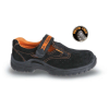 Hasítottbőr szandál, tépőzáras Cipőfelsőrész: Hasítottbőr Talp: Kompakt poliuretán Orrvédő: Polimer, 200 Joule Áthatolásbiztos betét: Kompozit szálból kerámia kezeléssel Talpbetét: Talpformát követő, GEL-betéttel Súly: 555 (g) Méret: EU: 35-48 UK: 2,