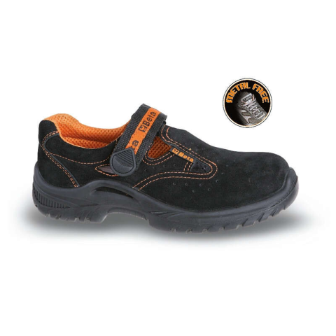 Hasítottbőr szandál, tépőzáras Cipőfelsőrész: Hasítottbőr Talp: Kompakt poliuretán Orrvédő: Polimer, 200 Joule Áthatolásbiztos betét: Kompozit szálból kerámia kezeléssel Talpbetét: Talpformát követő, GEL-betéttel Súly: 555 (g) Méret: EU: 35-48 UK: 2,