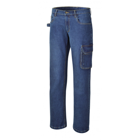 Elasztikus farmernadrág (munkaruha) XSÖsszetétel:98% pamut-denim, 2% elasztán, 10 oz Design:• Kőmosott • Két nagyméretű első zseb • Két hátsó zseb • • Nagyméretű bal oldali oldalzseb tépőzárral és kis szerszámos zsebbel • Colstoktartó zseb és kalapácstart
