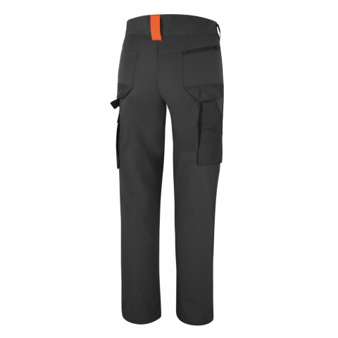 Sokzsebes elasztikus munkanadrág, XL Sokzsebes elasztikus munkanadrág, könnyített kivitel • 86% nejlon, 14% spandex, 140 g/m2 • 300D poliészterrel erősített térdvédőzsebek és hátsózsebek • Elszakíthatatlan ülőrész • A magasabb hátsó derékrész jobban vé