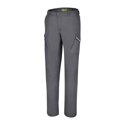 Cargo munkanadrág M100% pamut, 240 g/m2,oldalt gumírozott derékrész, nagy oldalzsebek fényvisszaverő betétekkelszürke, fluoreszkáló zöld részekkel Slim fit A Beta cargo munkanadrágjai egyszerű és modern megoldást kínálnak azoknak, akiknek kiemelten fontos