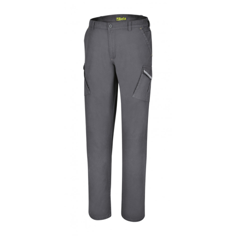 Cargo munkanadrág XL100% pamut, 240 g/m2,oldalt gumírozott derékrész, nagy oldalzsebek fényvisszaverő betétekkelszürke, fluoreszkáló zöld részekkel Slim fit A Beta cargo munkanadrágjai egyszerű és modern megoldást kínálnak azoknak, akiknek kiemelten fonto