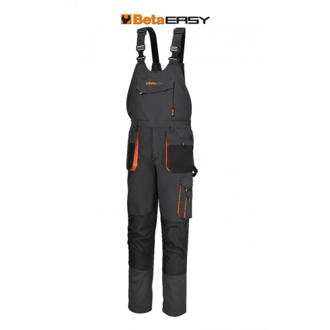 Kertésznadrág (munkaruha) Új kialakítás – jobb viselhetőség Anyag:T/C vászon, 65% poliészter, 35% pamut, 260 g/m2 Dizájn:• Oxford poliészter/PU betétek és térdvédő, 220 g/m2 • Fémcipzár • Állítható nadrágtartó műanyag gyorscsattal • Elasztikus derékrés