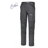 Sokzsebes munkanadrág, 100% pamut, szürkeANYAG:97% pamut, 3% elasztikus szövet, 220 g/m2 TULAJDONSÁGOK:• Gumírozott derékrész • Két nagy elülső zseb • Két hátsó zseb tépőzárral • Nagy első zsebek tépőzárral • Tépőzáras térdvédőbetétek • Kulcstartó gyűrű a