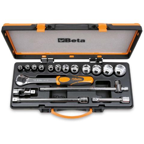 12 Dugókulcs és 5 tartozék fémdobozban 920A: 1/2-os hatlapú Dugókulcs 10 - 11 - 12 - 13 - 14 - 17 - 19 - 22 - 24 - 27 - 30 - 32 mm 920/21: 1/2-os toldó 125 mm 920/22: 1/2-os toldó 255 mm 920/25: 1/2-os csukló 920/42: 1/2-os csúszkás T-hajtószár 920/55: 1/