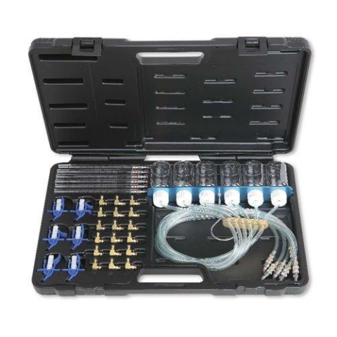 -Garantálja a befecskendezésnél visszafolyó folyadék könnyű és gyors mérését - Lehetővé teszi 6 befecskendezés egyidejű mérését - A készlet tartalmaz egy adaptert a BOSCH, SIEMENS, DENSO és DELPHI rendszerhez. 430x310x50 mm - 2,0 kg Méretek