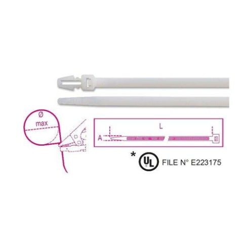 Befűzős műanyag kábelkötegelő szalag, natúrKérjük, a rendelésben ne a csomagok, hanem a kábelkötegelő szalagok számát adja meg Anyag: poliamid PA 6.6 + acél + szénfekete Lángállósági osztály: UL 94-V2 Működési hőmérséklet-tartomány: -40 °C ÷ +85 °C Legki