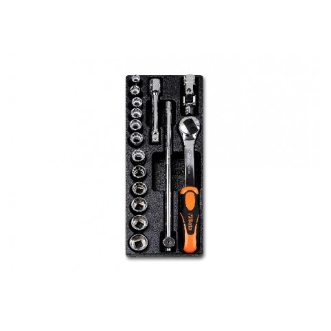 kemény hőformált műanyag tálca szerszámkészlettel kemény hőformált műanyag tálca szerszámkészlettel 920B1/2" - os tizenkétszögű dugókulcs 10-12-13-14-15-16-17-18-19-21-22-24 mm 920/211/2"-os toldó 125 mm 920/251/2"-os csukló 920/421/2"-os csúszkás...