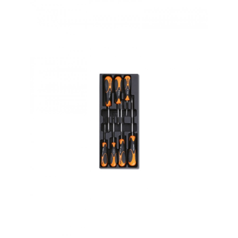 kemény hőformált műanyag tálca szerszámkészlettel 7 db-os 1290INOX?3x75 - 4x100 - 5,5x150 - 6,5x150 mm 1292INOXCsavarhúzó Phillips®-csavarokhoz,nemesacél PH0x60 - PH1x80 - PH2x100 mm C1-C2