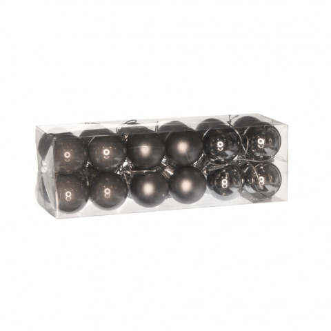 3 féle grafit szürke műanyag gömb dobozban Díszítsd fel ezekkel a szép grafit szürke gömbökkel a karácsonyfát. Csomagolási egység : doboz 1 doboz 24 db Gömb átmérő : 3 cm Három féle árnyalatban