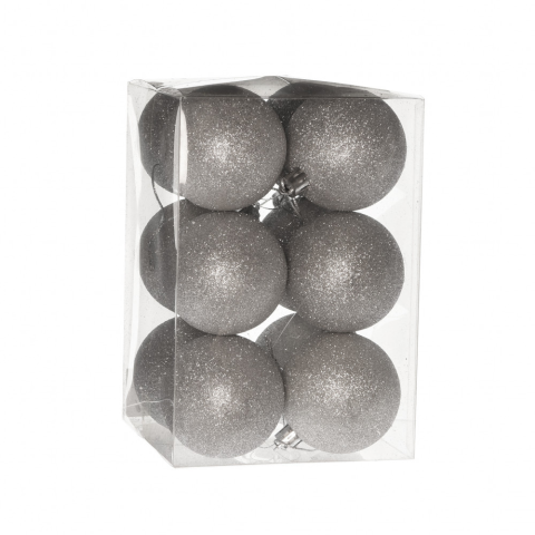 Műanyag gömb dobozban 6 cm Hogy szebbé tegyük a karácsonyt egy szép ezüst glitteres gömbbel a karácsonyfán. Csomagolási egység : doboz 1 doboz 12 db Gömb átmérő : 6 cm