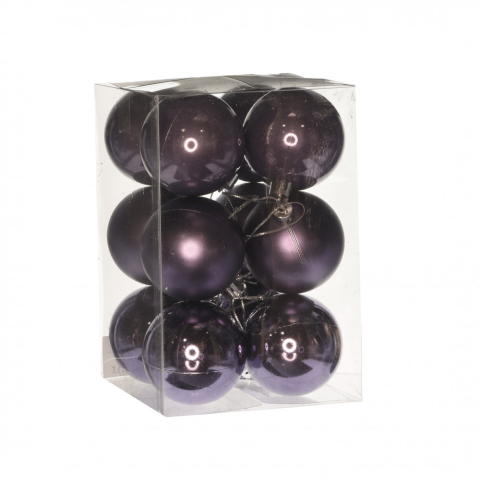 Műanyag gömb dobozban 6 cm lila 3 féle Hogy szebbé tegyük a karácsonyt egy szép lila gömbbel a karácsonyfán. Csomagolási egység : doboz 1 doboz 12 db Gömb átmérő : 6 cm
