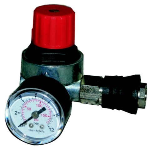 Léghálózatokra, kompresszorokra felszerelhető kompakt egység. A nyomásszabályozó manométert és gyorscsatlakozót tartalmaz.