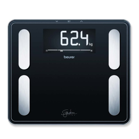 Súly, testzsír, testvíz, izomarány, csonttömeg, Amr/Bmr kalória kijelzés Testtömeg-index (Bmi) számítással Elektródák szálmintás, rozsdamentes acélból 5 aktivitási fok Felhasználói memóriahelyek száma: 10 Átállítás kg, lb, st között Quick Start gyorsindítás Kikapcsoló automatika, túlterhelés kijelzése Teherbírás: 200 kg / beosztás: 100 g / 0,1% / 1 kcal Méret: 35 x 30 x 2,8 cm Fellépő felület biztonsági üvegből: 35 x 30 cm Számjegyek mérete: 45 mm 3