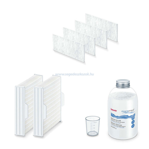 MAREMED MK 500 készülékkel történő használathoz 90 napos teljes csomag (napi 24 órás használat esetén) A csomag tartalma: 1250 g-os üveg speciális tengeri só mérőpohárral a könnyebb adagolás érdekében, 4 db előszűrő és 2 db vízszűrő Csak a Beurer MAR