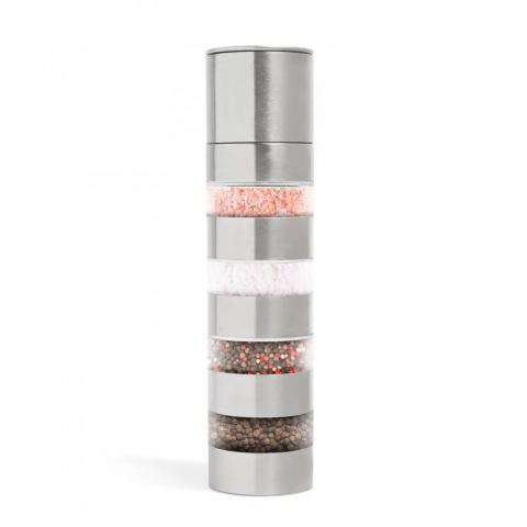 Rozsdamentes acélból készült fűszerörlő, amely 4 tárolórésszel rendelkezik, mely egységek sorrendje szabadon változtatható, így mindig kéznek van az a fűszer, amire szüksége van. Az őrlés finomsága egy tekerő segítségével állítható, attól függően, hogy éppen milyen minőségű őrlésre van szüksége.