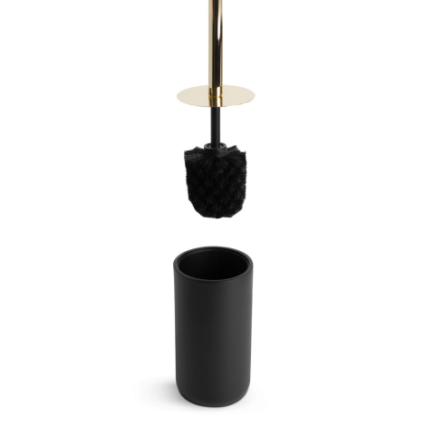 WC-kefe + tartó - matt fekete / arany Az elegáns és praktikus WC-kefe + tartó szett matt fekete és arany színkombinációval teszi még vonzóbbá a fürdőszobát, illemhelyiséget. A gyanta anyagból készült tartó stabilitást és tartósságot nyújt a kefe számár