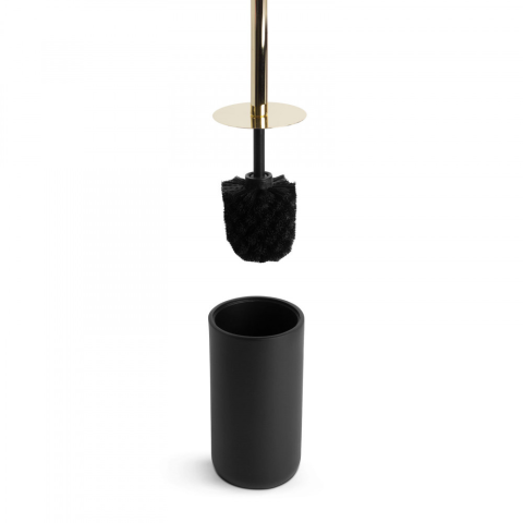 WC-kefe + tartó - matt fekete / arany Az elegáns és praktikus WC-kefe + tartó szett matt fekete és arany színkombinációval teszi még vonzóbbá a fürdőszobát, illemhelyiséget. A gyanta anyagból készült tartó stabilitást és tartósságot nyújt a kefe számár