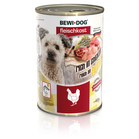 A Bewi-Dog színtyúkhúsban gazdag konzerves eledel kutyáknak egy prémium minőségű, Németországban készült konzerves kutyaeledel.