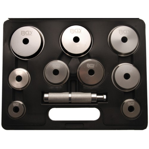 Csapágy fészek beütő készlet többféle méretben. Tengelyek, csapágyak és sok más minden kisebb csapágy fajtákra speciálisan kialakított beütő készlet Tulajdonságok: - Méretek: 40 - 44 - 50 - 59 - 63 - 65 - 72 - 76 - 81 mm - 14 mm-es tengelyméret Súly