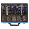Menetjavítás professzionális szinten; HSS-G acél fúrószárakkal; Szortírozós kofferben. A készlet tartalma: 5 db HSS-G menetfúró 5 db HSS-G csigafúró 5 db speciális beszerelő szerszám 5 db csaptörő 110 db menetes persely az alábbi összeállításban: 25