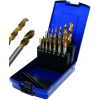 Titán-nitrid bevonat.A készlet tartalma:7 db fúrószár: Ø 2.5 - 3.3 - 4.2 - 5.0 - 6.8 - 8.5 - 10.2 mm DIN 338 szerint7 db menetfúró szár: M3 - M4 - M5 - M6 - M8 - M10 - M12 DIN 371 / 376 B szerintÉlettartam anyag- és törésgarancia!