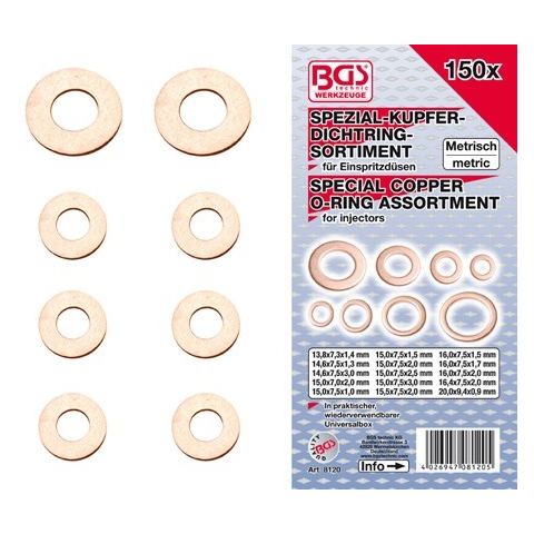 1 kép BGS 150 darabos réz alátét készlet befecskendező szelepekhez