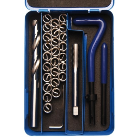 Erős, fém tartóban.A készlet tartalma:1 db HSS-G menetfúró szár1 db HSS-G csigafúró szár1 db speciális behelyező szerszám1 db csaptörő24 db menetjavító perselyÉlettartam anyag- és törésgarancia!
