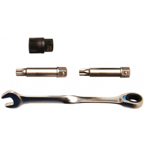 Generátorok szétszereléséhez Szállítási terjedelem: T-profil bit (Torx) T50, 64 mm hosszú 12 mm-es külső hatszöglettel és golyóval Többfogú bit M10 (XZN), 64 mm hosszú 12 mm-es külső hatszöglettel és golyóval 33 fogú betét 15 mm-es külső hatszögletűv