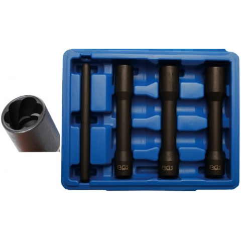 Az innovatív spirál profil belevágja magát a sérült csavarfejbe / anyába és lehetővé teszi annak biztonságos eltávolítását; Króm-molibdén acélból készül; Fekete bronz bevonat; Légkulcsokkal való használatra. Méretek: 17 - 19 - 21 mm Élettartam anyag