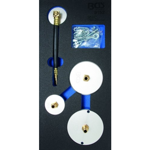 Fékfolyadék tartályon keresztüli fékrendszer feltöltésre és légtelenítésre;Fémből készült;1/3-os szerszámtálcában;Európai szabványos levegős csatlakozóval kapcsolódik a fék szervizelő eszközökhöz, pl. a BGS 8315 Professzionális féklégtelenítőhöz.A kés
