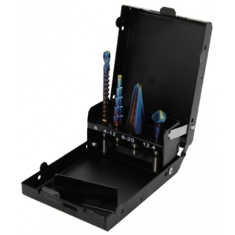 Lépcsős fúró 4 - 12 mm Kézi fúró 8 - 20 mm Marófúró 6 x 90 mm Süllyeszték 12,4 mm Műszaki adatok: Bruttó súly 290 g Blister csomagolásban Igen